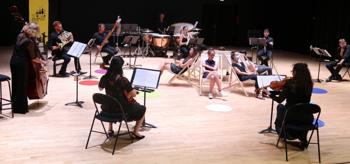 Après avoir déterminé quel est votre principal besoin du moment (mouvement, calme, rêve, spiritualité…), installez-vous dans les transats placés au centre du cercle formé par les musiciens, et écoutez les morceaux correspondant aux besoins choisis !